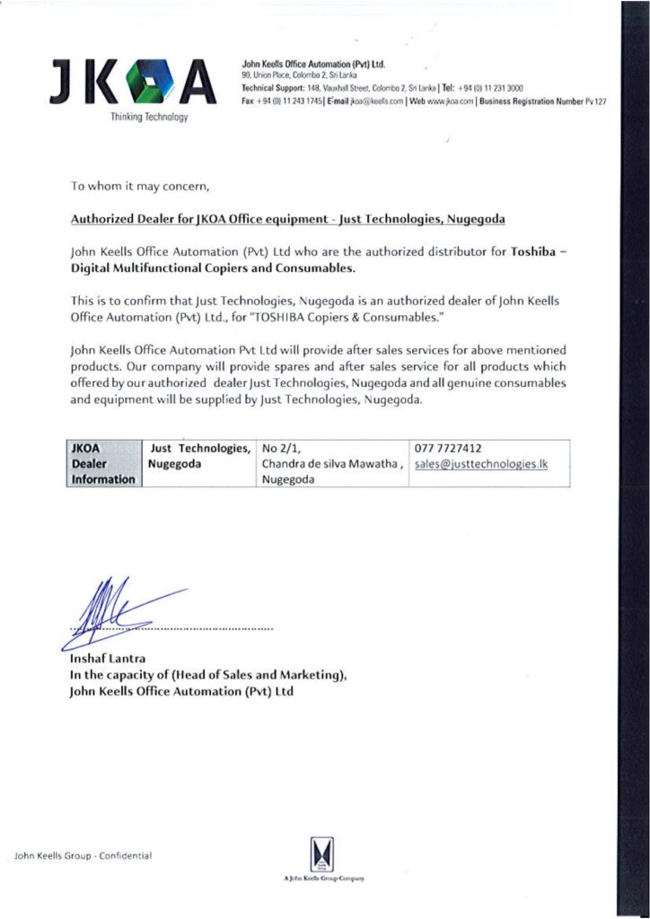 Authorized Dealer for John Keells Office Automation (Pvt) Ltd.